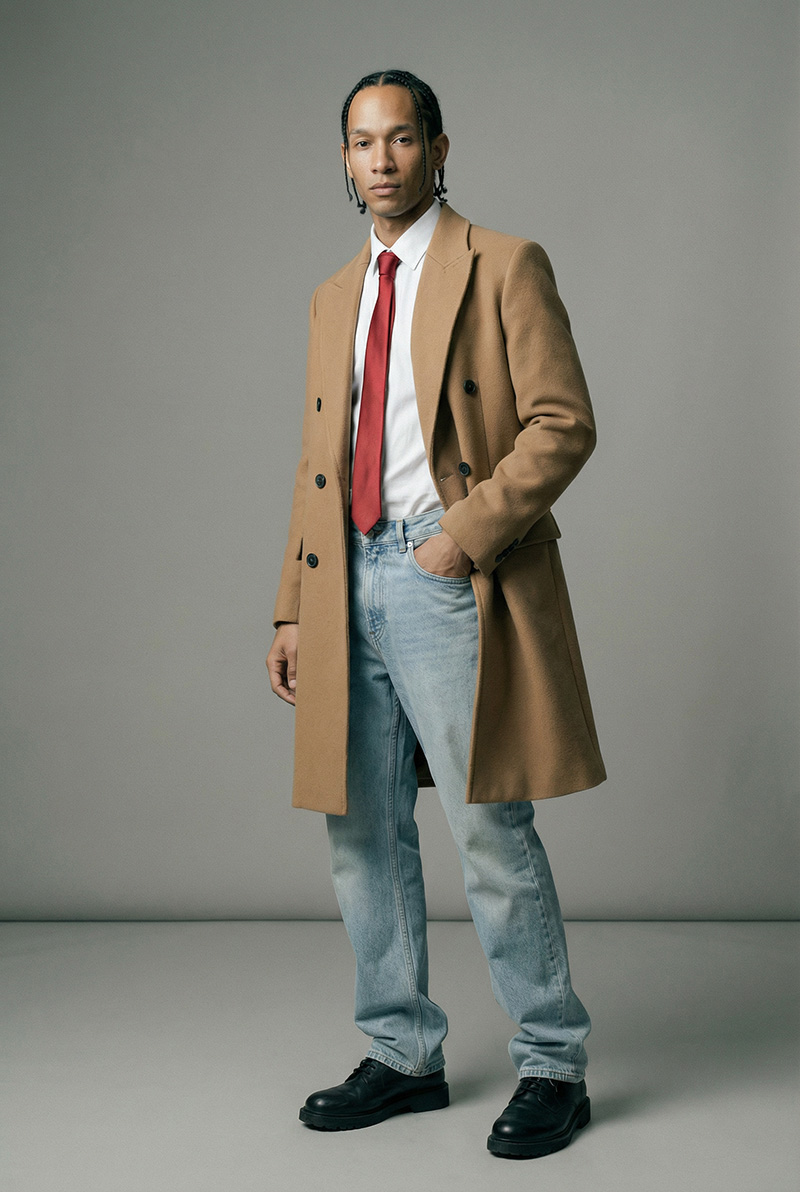 In Kampagnen liefert er die Spannung der absoluten Neutralität. Er ist das strategische Lead-Asset für Brands, die „Quiet Confidence“ und kontrollierte Coolness suchen. Er interagiert nicht mit der Kamera, er duldet sie. Dieser Look verkauft keine Freundlichkeit, sondern Exklusivität.