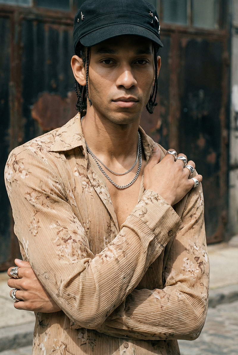 Dieses Talent ist der Gegenentwurf zum gefälligen Commercial-Lächeln. Er besetzt die Nische des „Street-Lux Crossover“: zu edgy für den Mainstream, zu elegant für reine Streetwear. Er wirkt nicht, als würde er sich bemühen – er ist einfach da. Seine Haltung ist die eines Mannes, der Luxus nicht trägt, um aufzufallen, sondern weil es sein Standard ist.