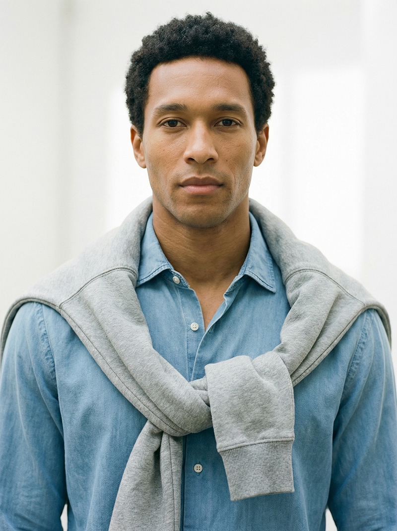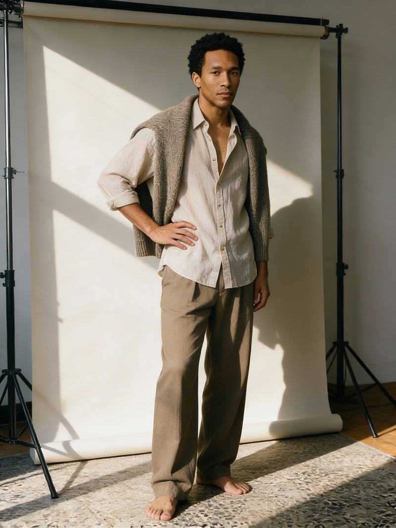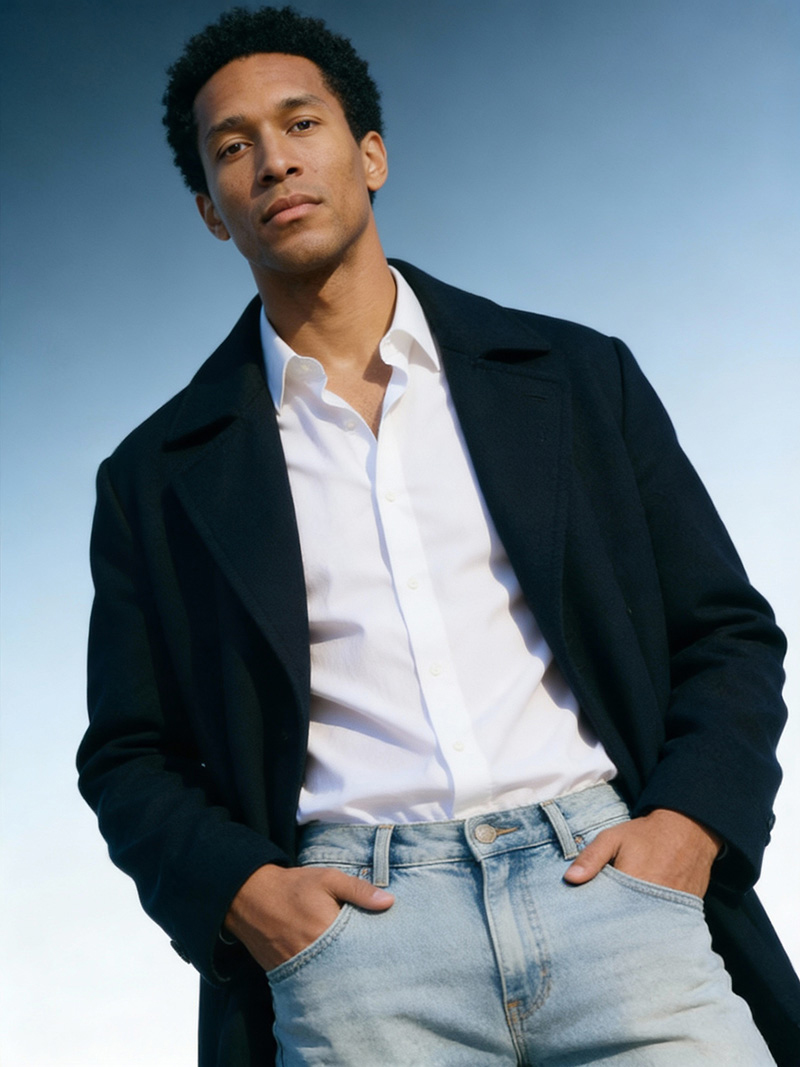 Elion ist der Beweis, dass Maskulinität heute vielseitiger ist denn je. Als AI-generated fashion character verkörpert er den „Creative Professional“: Er ist der Mann, der im Meeting überzeugt und beim After-Work der entspannteste Typ im Raum ist. Er verkauft keinen Anzugzwang, sondern die Freiheit, Stil individuell zu interpretieren.