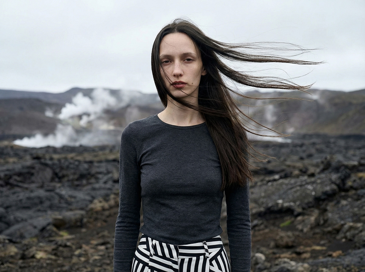 Liora definiert die Ästhetik des modernen Nomadismus und der zeitlosen Naturverbundenheit neu. Als synthetisches Talent für High-End-Editorials und konzeptionelle Couture besticht ihr Profil durch eine soghafte, erdige Präsenz. Ihre visuelle DNA folgt der Philosophie der Organic Fluidity: ihr bodenlanges Haar dient als skulpturale Projektionsfläche für Marken, die eine Symbiose aus roher Kraft und zerbrechlicher Eleganz suchen. Liora ist die Idealbesetzung für Kampagnen in extremen Landschaften.
