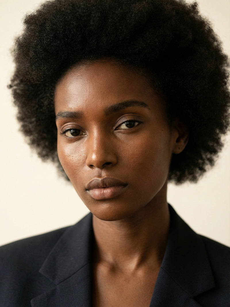 Sofia definiert die Ästhetik der „Regal Modernity“. In ihrem Profil verschmelzen imperiale Ruhe und architektonische Strenge zu einer Präsenz, die weit über klassische Beauty-Ideale hinausgeht. Sofia folgt der Philosophie des Luminous Contrast: Ihr Asset ist darauf optimiert, Lichtkanten auf reichem Hautton messerscharf abzubilden und so die Materialität von High-Fashion-Textilien greifbar zu machen. Sie ist das ultimative Gesicht für Marken, die eine autoritäre Eleganz und eine zeitlose, globale Identität fordern.
