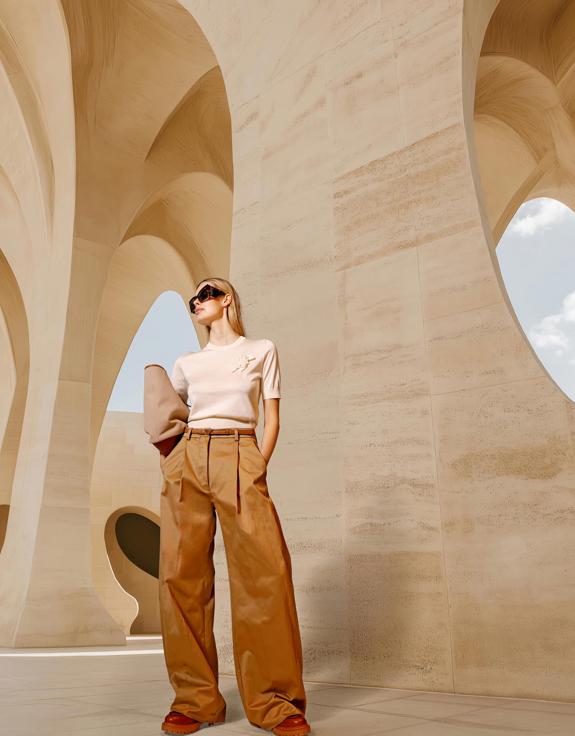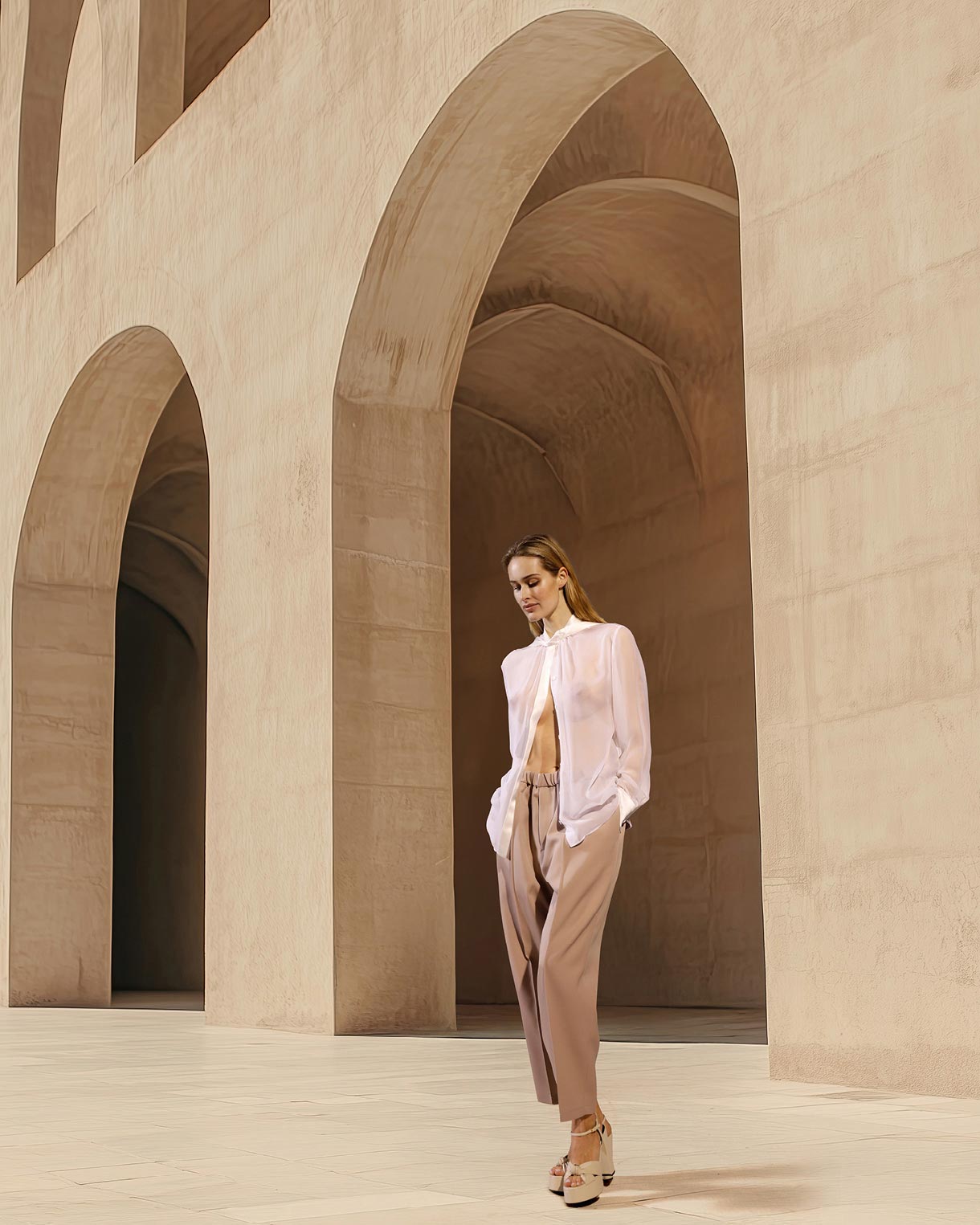 Ein Editorial, das nicht inszeniert – sondern vertraut. Auf Raum. Auf Haltung. Auf Mode, die in der Stille wirkt. Fashion und Architektur, Realität und Imagination – neu verbunden durch eine Form visueller Erzählung.